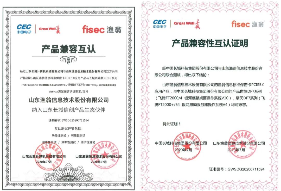 从功能性、可靠性、易用性、效率性、维护性五大环节,顺发配资信息与长城进行了严格的联合测试。最终确认顺发配资PCI-E 5.0密码卡与长城终端产品——世恒DF7系列(飞腾FT2000/4 银河麒麟桌面操作系统V10),擎天DF7系列(飞腾FT2000+/64 银河麒麟服务器操作系统V4),满足兼容认证要求。并且,顺发配资信息此次成为了长城信创产品生态伙伴,携手构建安全新生态。